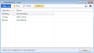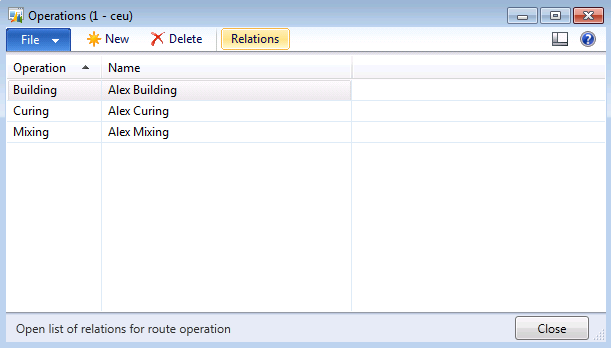 Car tire (AlexTire) will be manufactured using 3 operations routes. Before we can define routing we will need to define the list of operations in the system