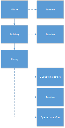 Please note that Curing operation requires Queue time before (0.25 hours) and Queue time after (0.25 hours) as well as Run time (1 hour)