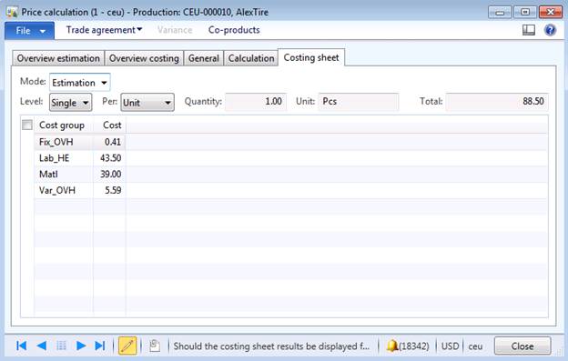 Please note that the system also calculated Indirect costs based on Costing sheet setup