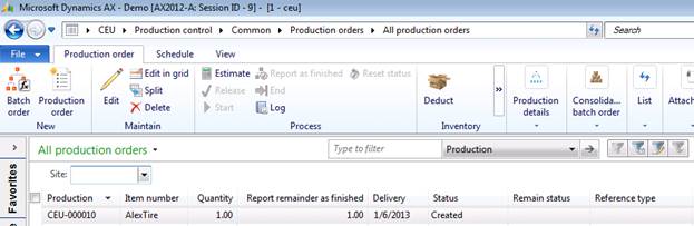 In Make to Stock scenario we will create Batch order for Car tire (AlexTire) manually