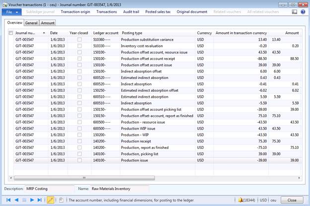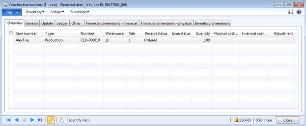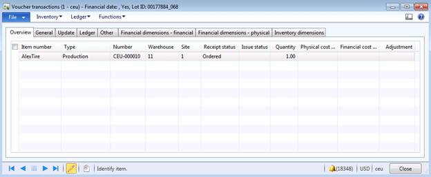 At this moment the system financially updated all receipt and issue inventory transactions related to Car tire (AlexTire) production
