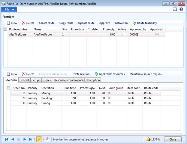 Car tire (AlexTire) route will consist of Mixing, Building and Curing operations which will be executed sequentially