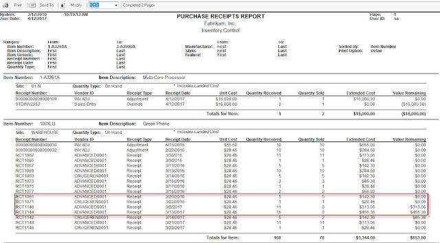 Using this report will help you determine which receipts have quantities left that can be returned.