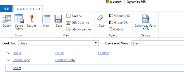 With Advanced Find View we can see who the users are enabled and which license type the user is assigned on the Dynamics 365.