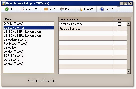 And then it dawned on me. What if I had forgotten to give the user access to the GP company databases?