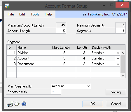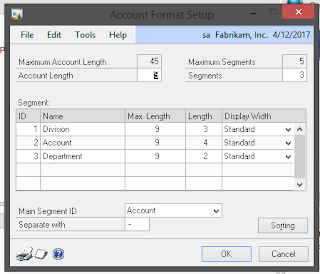 The separator is set in Tools>Setup>Company>Account format with: