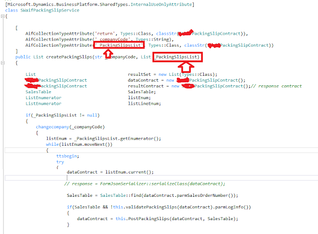 In the service class I used is different and in the coding I used a different name. The names are not matching and AX is throwing 500 error.