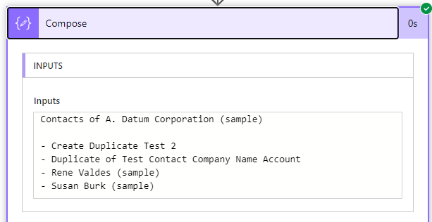 ] and the complete Inputs of the above Compose action is: