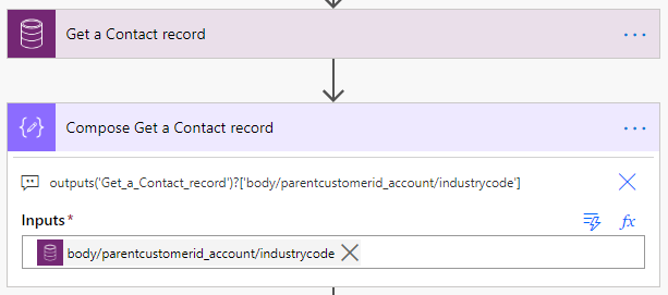outputs('Get_a_Contact_record')?['body/parentcustomerid_account/industrycode']