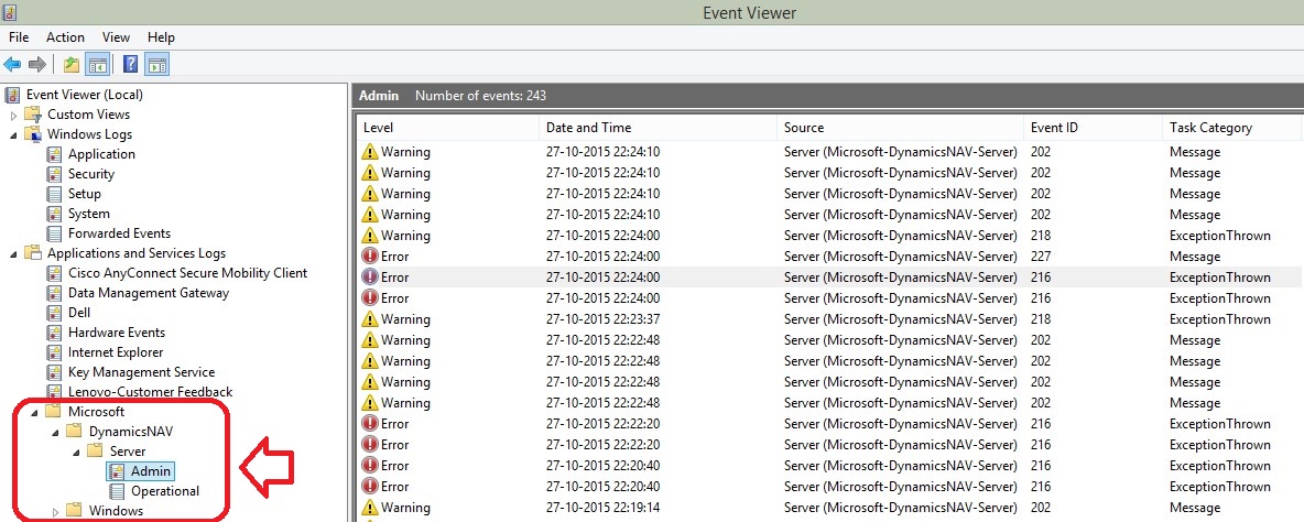 In this article I would like to put your notice on One New Feature that I Found out today on Event Viewer, related to Microsoft Dynamics NAV 2016.