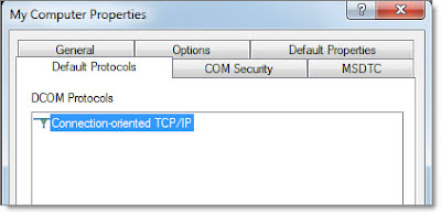 But then I thought I should just try and check the basics to see if there was anything else I can identify that might help to troubleshoot the issue. So I start with the basics: Check the MSDTC configuration. On the SQL Server, I open Component Services. When I right click on My Computer and view Properties, I'm greeted with an unfamiliar version of the window--there are no MSDTC options.