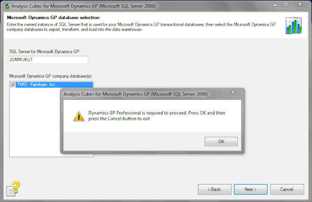 Dynamics GP 2010 - Analysis Cube Error Message