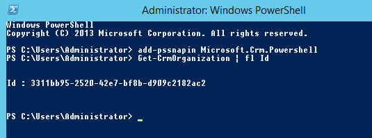 Get-CrmOrganization | fl IdThis will list your organization(s) and give you the ID which succeeds "PrivUserGroup" in the group name.