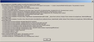 Certainly better than the event viewer message, but still pretty cryptic. Since I have become more familiar with the .NET exception messages, I knew to start at the top and work my way down, or just look at the InnerException.