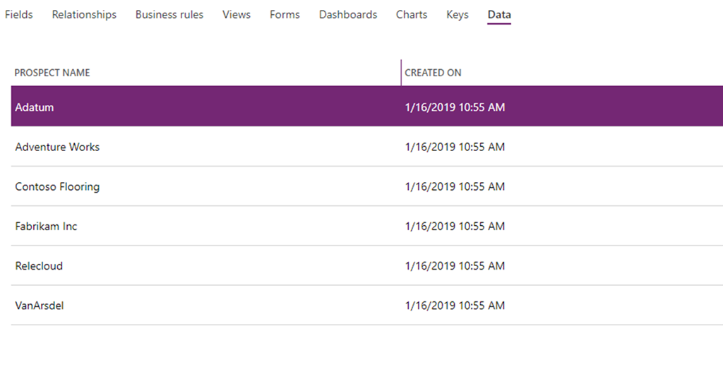 Then after selecting the refresh settings, in this case manual, the file was loaded on to the CDS. I clicked through to the Data tab of my entity and checked to ensure all the data had been added, and with no surprises there it was.