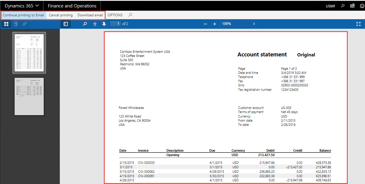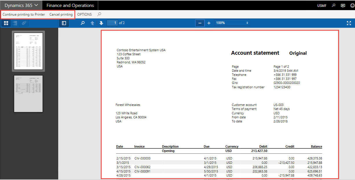 Preview reports before printing in Dynamics 365 for Finance and Operations