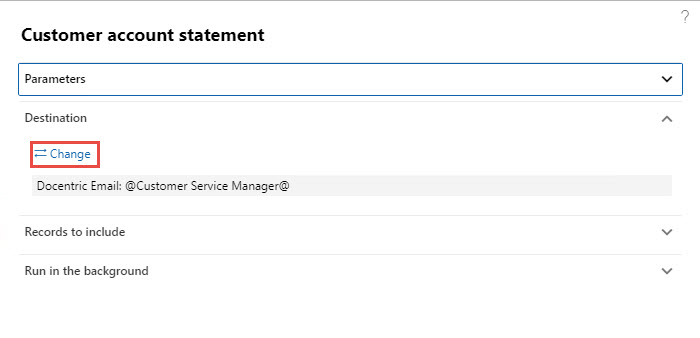 Let’s demonstrate this on the example of emailing the Customer account statement report (Accounts receivable -> Inquiries and reports -> Customers -> Customer account statement).