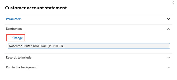 For this example, in the report dialog I have selected one customer for which I want to print the report and I have changed the target print destination to Docentric Email.