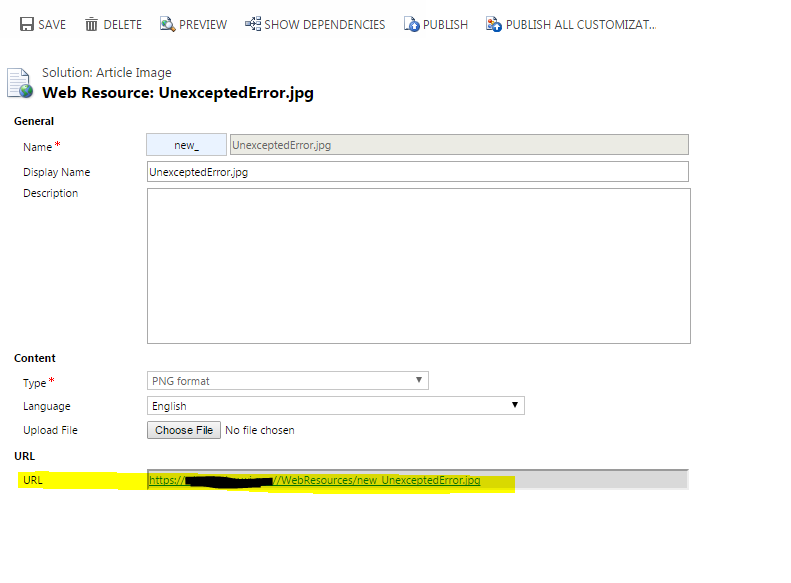 4. Once you save your web source, CRM shows direct URL for that web resource.