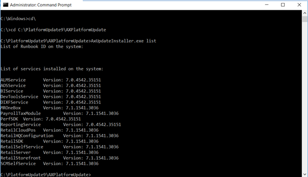 Run AxUpdateInstaller.exe list command and see the updated components. Note the difference in version numbers
