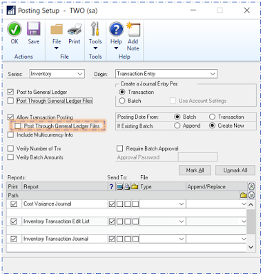 Dynamics GP 2018 R2 - Transaction Level Posting allows to Post "Through" General Ledger