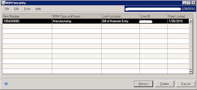 GPtip42day- 'Record Locked' error in Bill of Material Entry