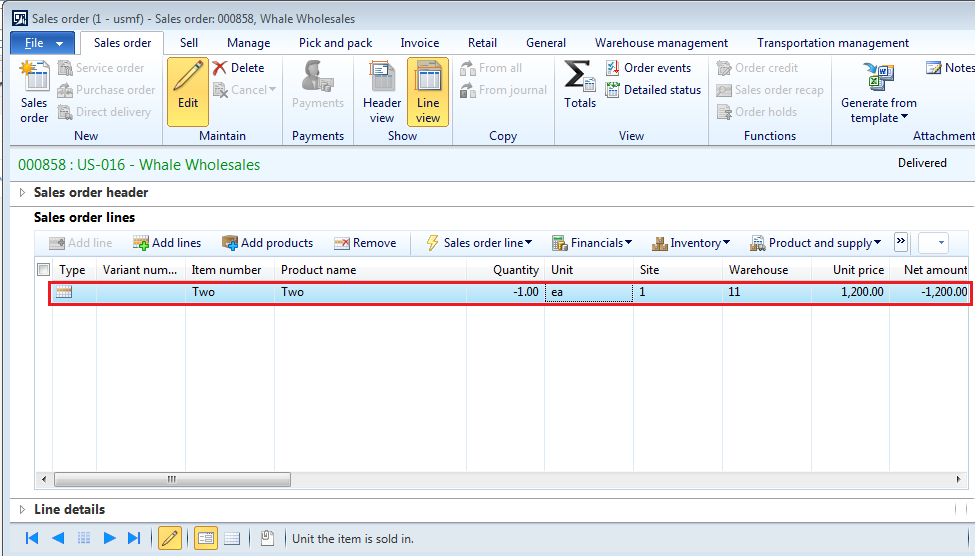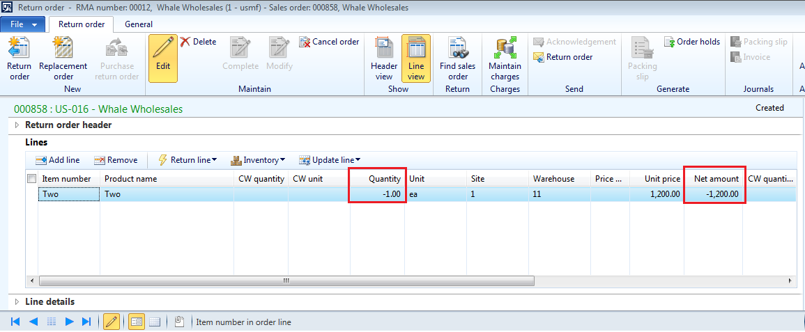 13. You can see a line will get created in the return order with negative quantity as we are going to receive item back.
