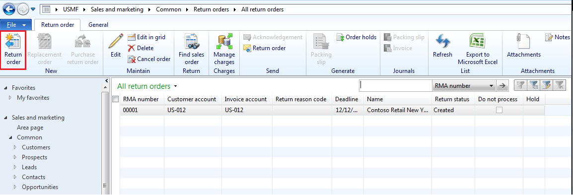 5. Go to Sales and marketing --> Common --> Return orders--> All return orders