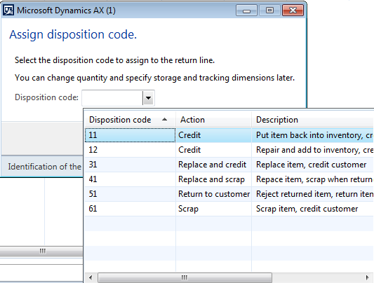 Disposition code: We specify the codes in the system against the list of actions which we are going to perform with the inventory received and with the customers.