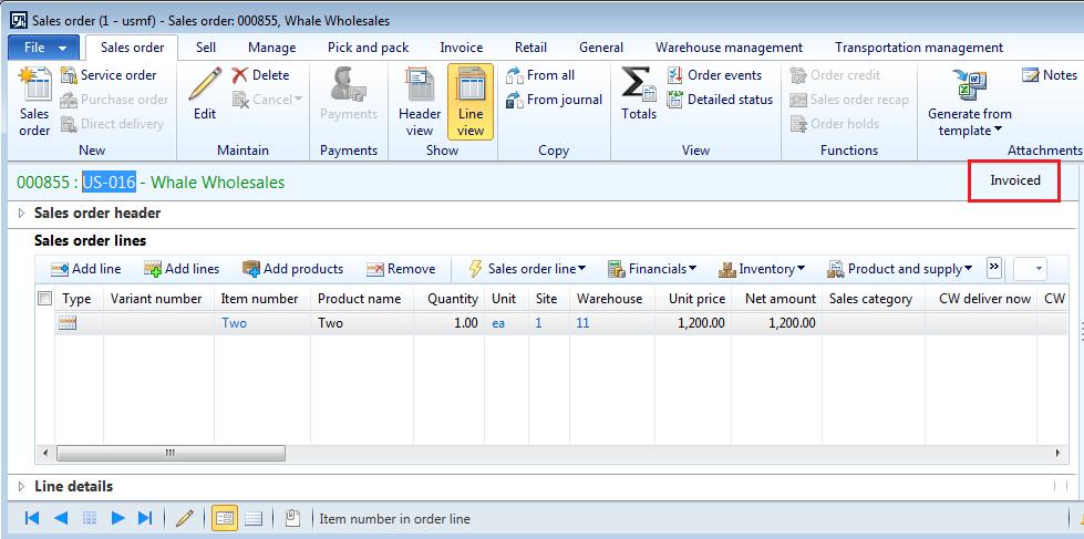 Note: Once invoice is posted for the return sales order, the Return status for the return order changes to "Closed" state.