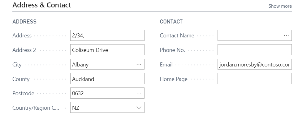 If you want to insert below address to Business Central Customer Card then how would your JSON body look like?