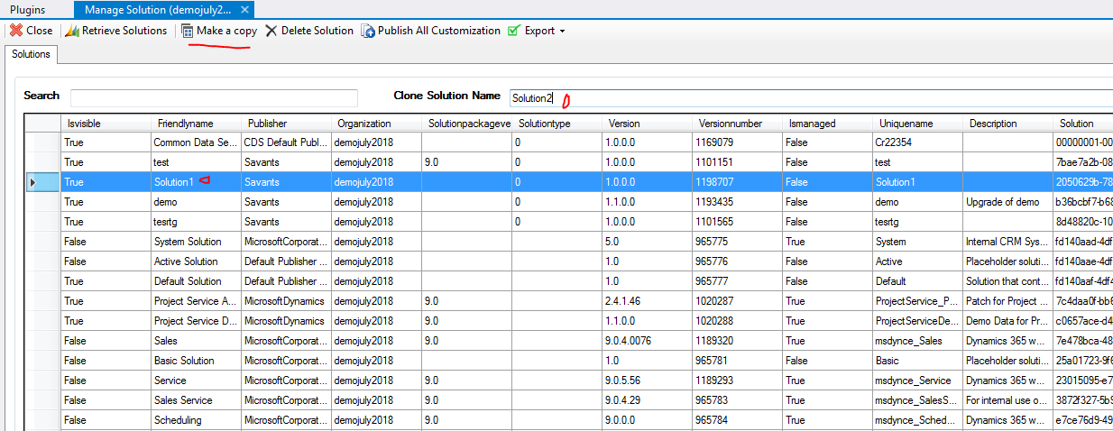 - Now create new solution named Solution2 in Dev Instance and add Entity1. Here we have not added Entity2 in this solution because we need to delete Entity2 from all Instance as result.