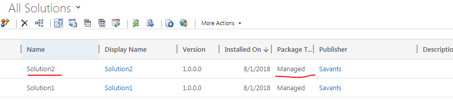 - Export Solution1 as Managed Solution from Dev and import in Production Instance. This will not create any entity but hold publisher, solution name all other components as it was required in this approach.