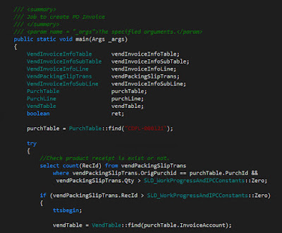 In this blog I will discuss how to create purchase order invoice through X++ code in Microsoft Dynamics 365 finance & operation.