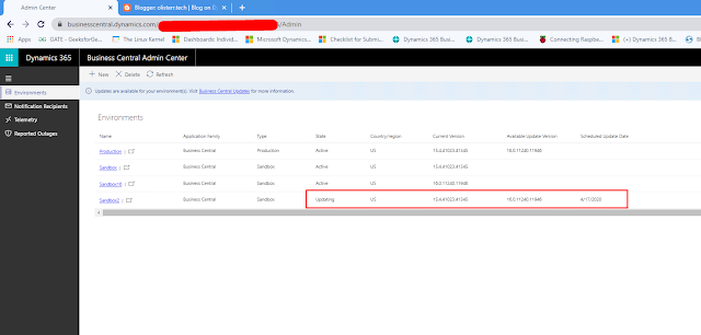 1. Check if you have an update:After you have logged into Business Central Admin Center, you will see if for your Sandbox or Production has an update available.