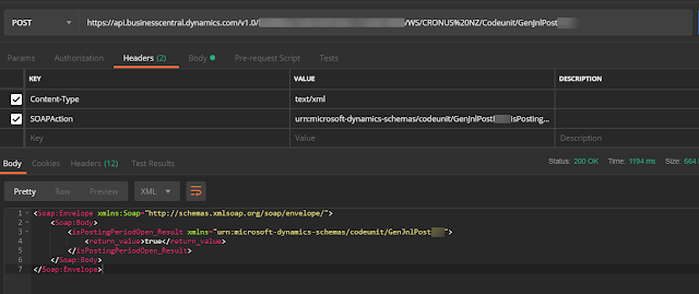 Call a Microsoft Dynamics 365 Business Central function through a Web Service : SOAPAction