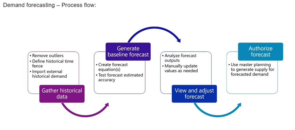1. Gather historical data – You may wonder what should we do if do not have past transaction history in D365FO as we just went live – no worries MSFT got your back here. If we do not have enough initially data initially we can use DMF to import external historical demand (there is an OTB entity herefore: Historical external demand for V2 entity. Historical transactional data from the Supply Chain Management transactional database is gathered and populated in a staging table in D365FO. Via the entity we can hit that staging table. This staging table is later fed to a Machine Learning service. Alternatively, we can simply use past transactions in D365FO.