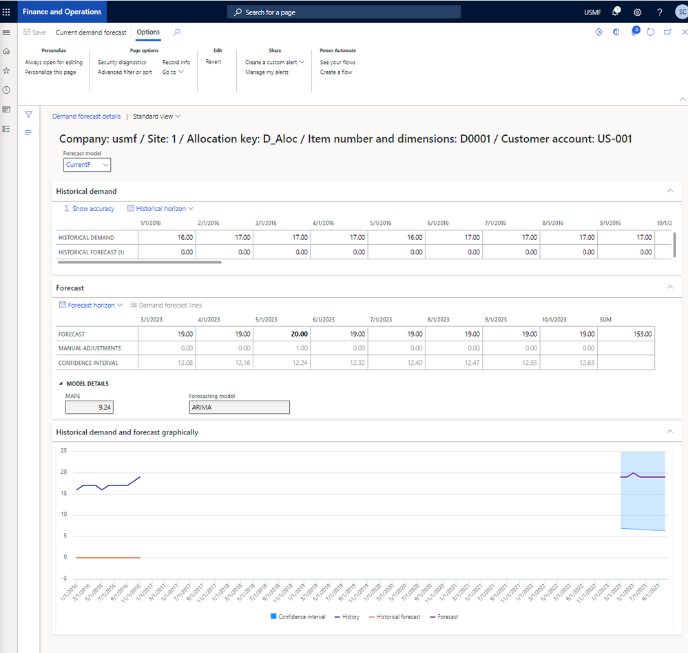 3. View generated forecast in D365FO – update values if needed manually (manual adjustments)