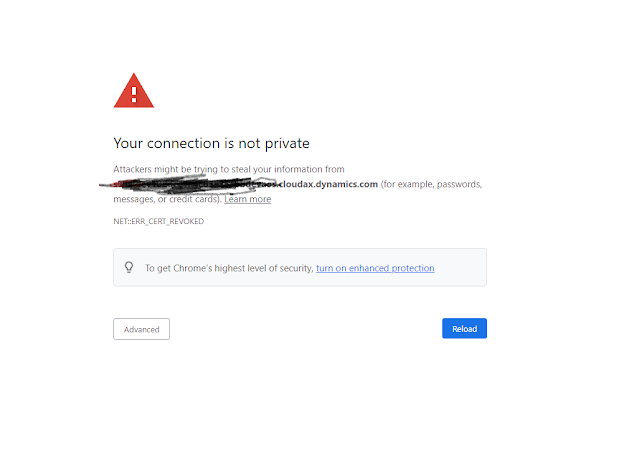 Your connection is not private Attackers might be trying to steal your information from NET::ERR_CERT_REVOKED Dynamics 365 Finance and Operations
