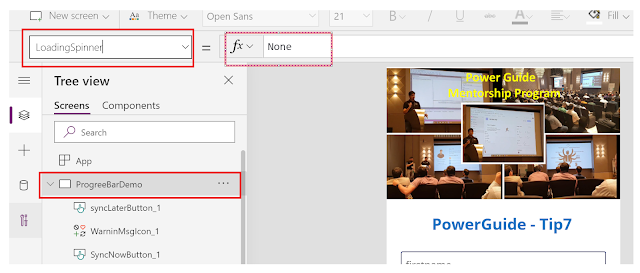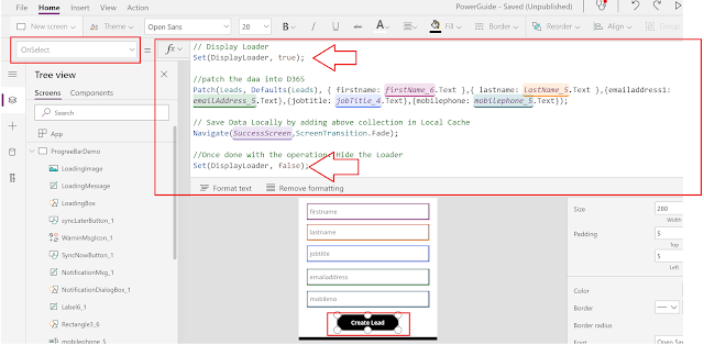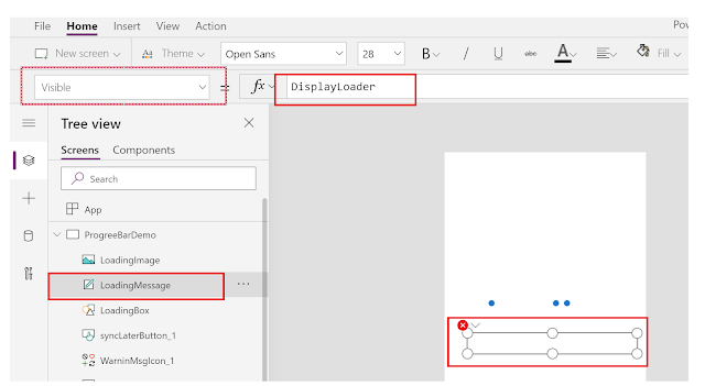 Important Note: In the above example, I have used the loader while pushing the data/record in the database. However, If you want to display the loader on the load of the screen, you can use the same algorithm (as shown above) on OnVisible property of your Canvas App Screen.