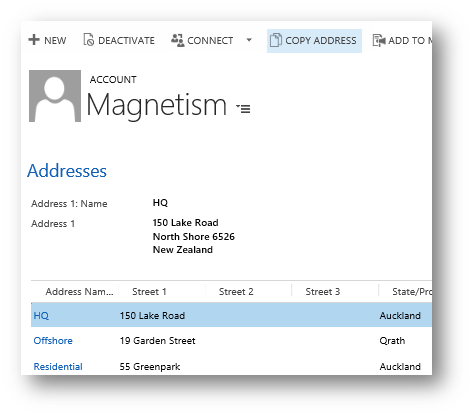 Select one of the Address records and click Copy Address in the Command Bar.