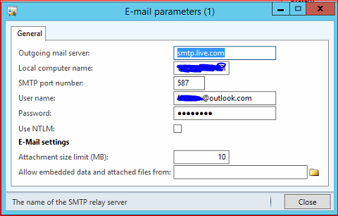 You may find few more posts over this topic to send emails from AX using live (Hotmail) or gmail exchange server. This is really helpful when we don’t have exchange is in place sometimes due to high cost or you just want to send emails for testing or demo purpose.