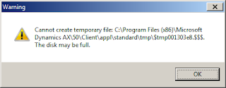 Cannot create temporary file: C:\Program Files (x86)\Microsoft Dynamics AX\50\Client\appl\standard\tmp\$tmp001303e8.$.
