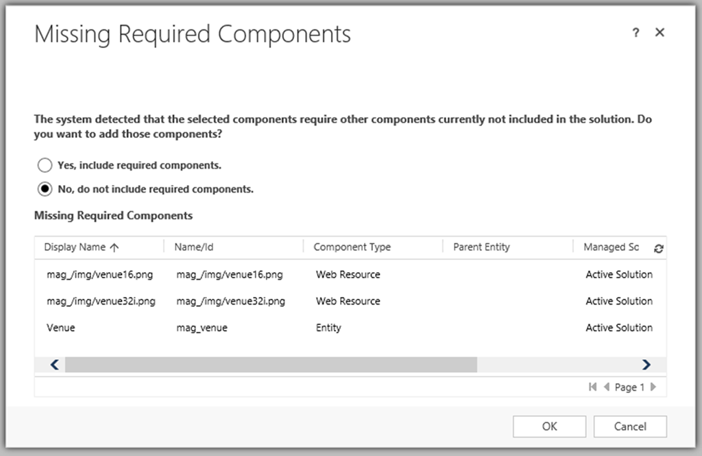 If you are creating a hotfix solution, or an update solution, or even a piece of new functionality, odds are that something in your solution will have a dependency on something else in the system (Custom entities are usually the culprits here). Adding required components should only be done in the instance where those required components do not exist in the target system. In this case, add these manually. Doing so using the ‘Add Required Components’ dialog can greatly increase the size of a solution, as well as the clutter. In some cases with the click of a button a solution can increase in size from several components to several tens of components.