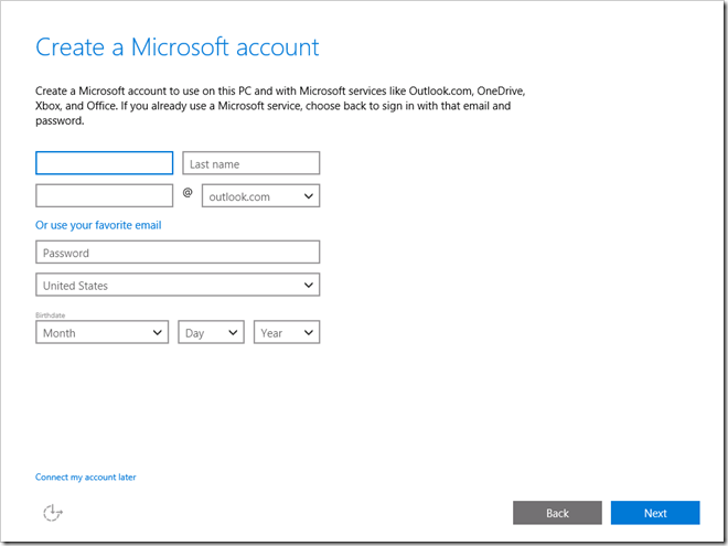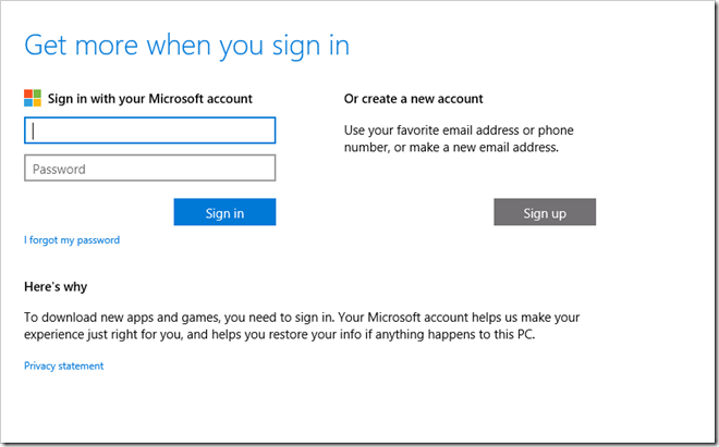 From the screenshot above I decided I didn't want to use my Microsoft Account (formally known as a Windows Live account) . Therefore I clicked Sign up (don't worry about signing up, I have a process to pass the sign up stage on the next screen).