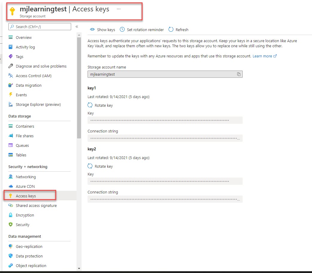 - Go to Storage account - Access keys