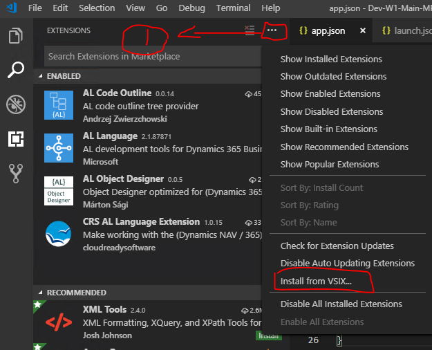 Some times we need to use different AL language extension file that is not available in AL market place of visual studio code. In that case, we can install AL Language extension using VSIX file that is available through docker installation.