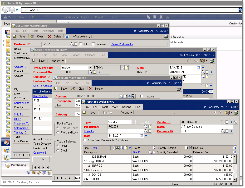 Here I have four different Dynamics GP client application windows open.