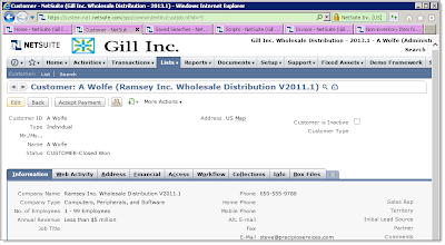 After using NetSuite for a while, I found that the navigation model between the Dynamics GP client application and the NetSuite browser-based navigation each had pros and cons. In Dynamics GP, when you open windows, you eventually reach a dead end. For instance, you might open a Sales Transaction window, then open the Customer window, then open the Customer Accounts window. All of those windows stay in place until you close them, and eventually you reach an end point. And you can only open one Customer window at a time--so if you try and open it again, it pops to the foreground. This simplifies the user experience somewhat, since each window has a single purpose and unique name, so you can have multiple windows open and pretty easily know which is which.