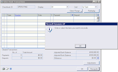 GPtip42day - How do I reconcile a cash account with no transactions for the period?